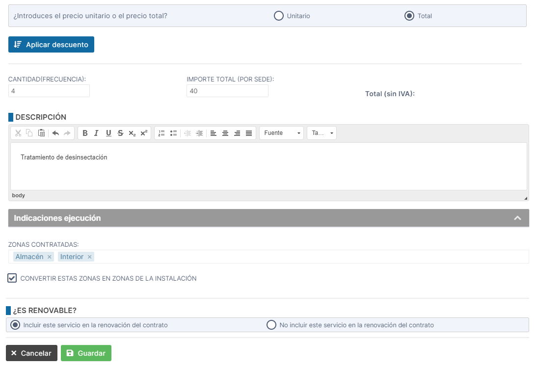 Mostrar el importe total del contrato. Desmarcaremos esta