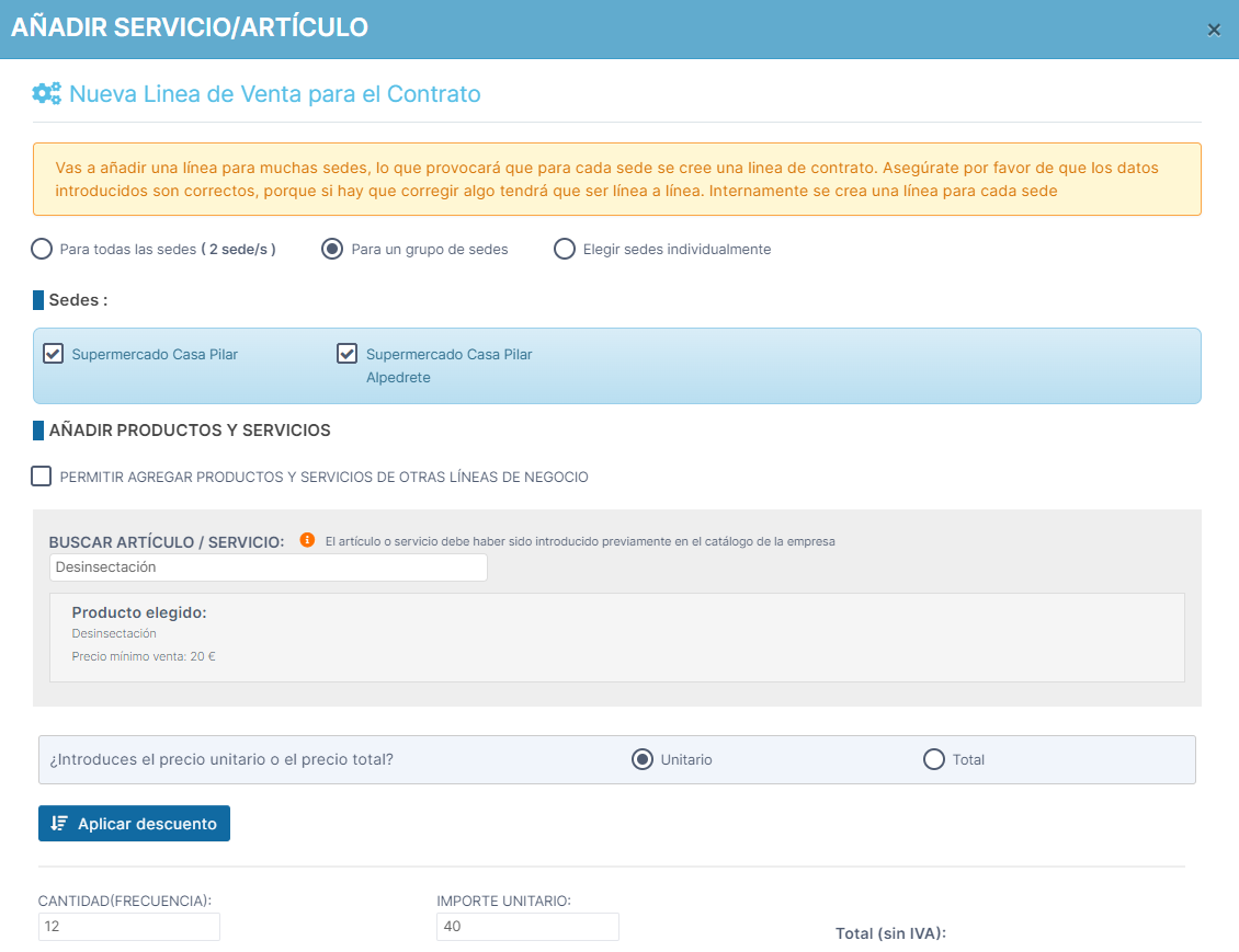 esta opción en caso de que queramos agregar el servicio para una o varias