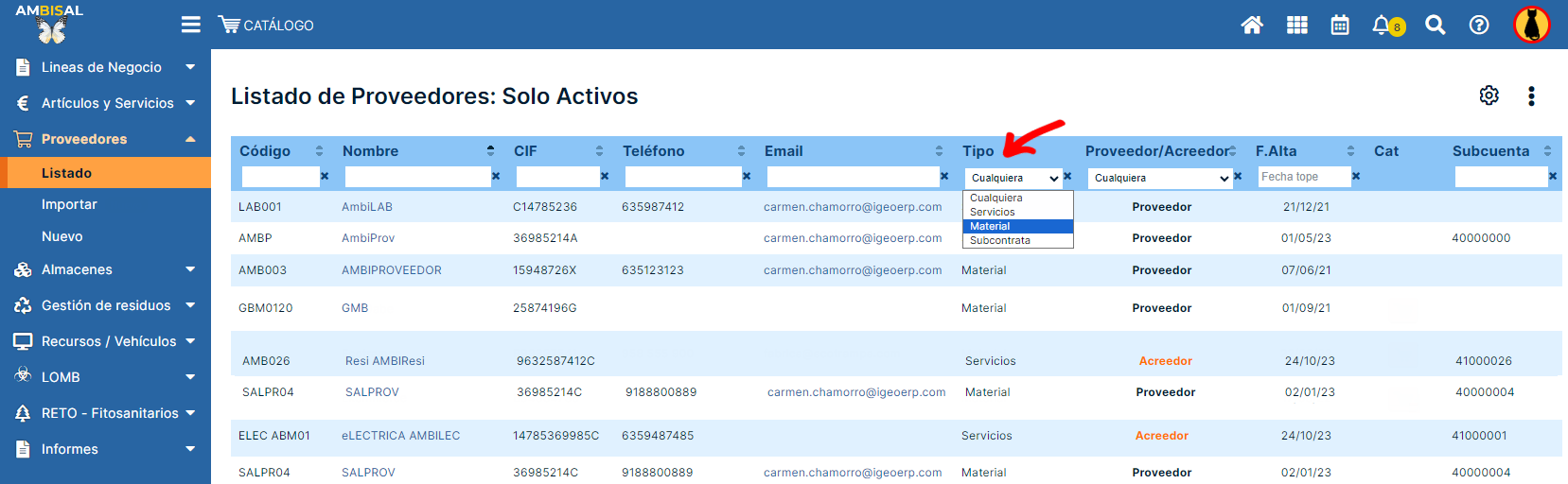 Acceder al listado de proveedores