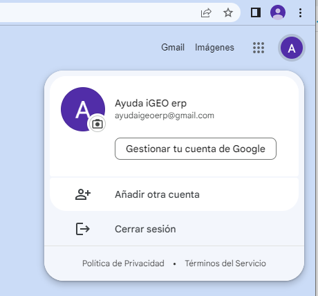 En la parte superior derecha, clicamos en nuestra cuenta de Google para que así sea abierta la ventana que permite "gestionar tu cuenta de Google"