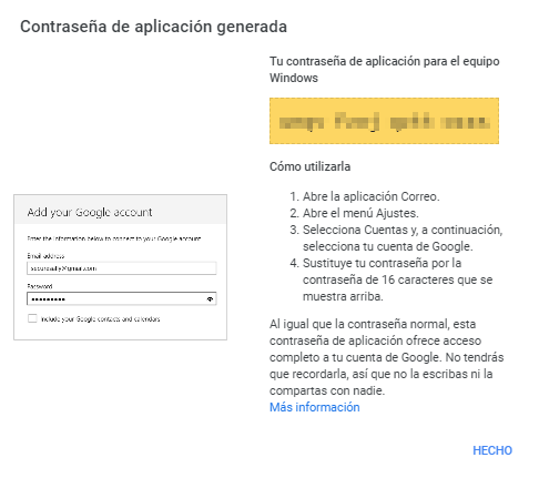 C) Aparecerá una nueva ventana en la cual nos indica la contraseña de app para nuestro ordendor Windows. Copiamos la contraseña aportada para que posteriormente podamos colocarla en contraseña a SMTP genérica en IGEO en el módulo de configuraciones de Empresa.