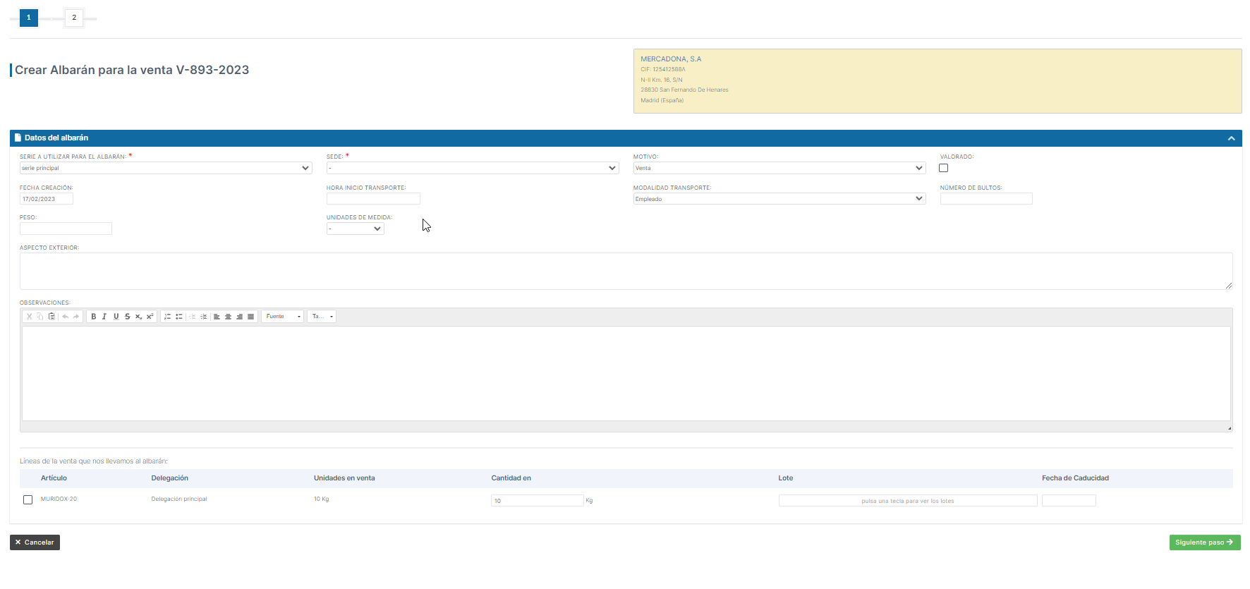 4. Debemos cumplimentar todos los datos obligatorios > Siguiente paso > Guardar.
