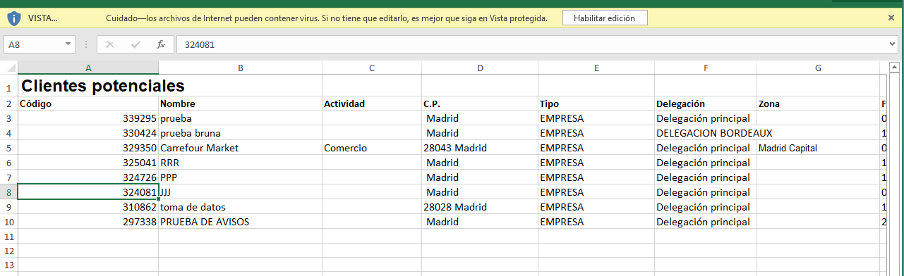 Realizamos una búsqueda de empresas potenciales en activo, de la provincia de Madrid.