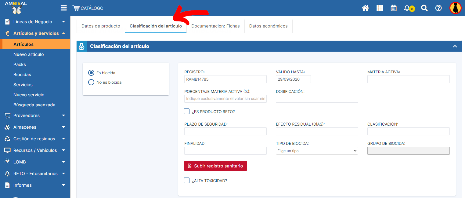 Para registrar un nuevo artículo o modificar uno que ya existe,
