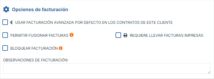 En la sección Opciones de facturación, completaremos algunos