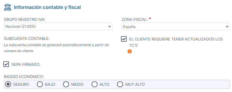 En la sección Información contable y fiscal,