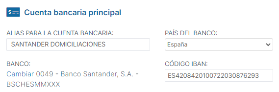 dar de alta la cuenta bancaria principal del cliente, imprescindible
