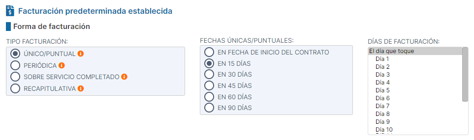 en caso de que queramos poder elegir como Forma de facturación