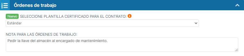 Notas para las órdenes de trabajo. En este