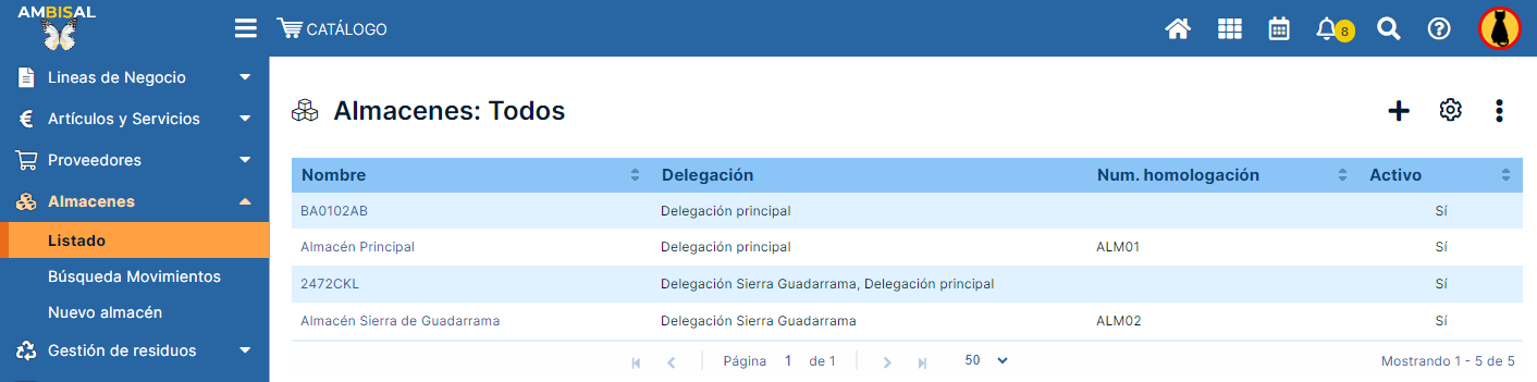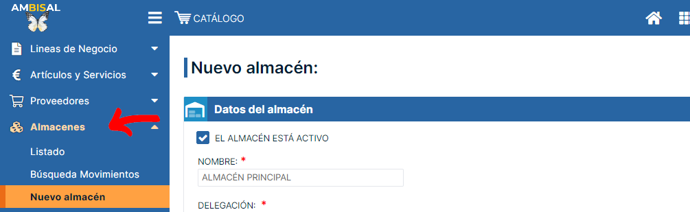 Para crear un nuevo almacén, debemos abrir el módulo catálogo