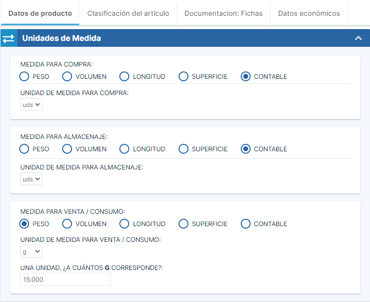 La forma en que registramos las unidades de medida de un artículo en nuestro catálogo en iGEO determina cómo debemos anotar su consumo, su compra, los movimientos de almacén de ese producto, y el modo en que se mantendrá actualizado su stock.