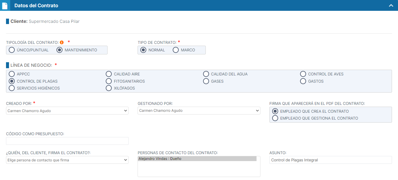 configuración no podrá modificarse una vez guardemos el contrato.