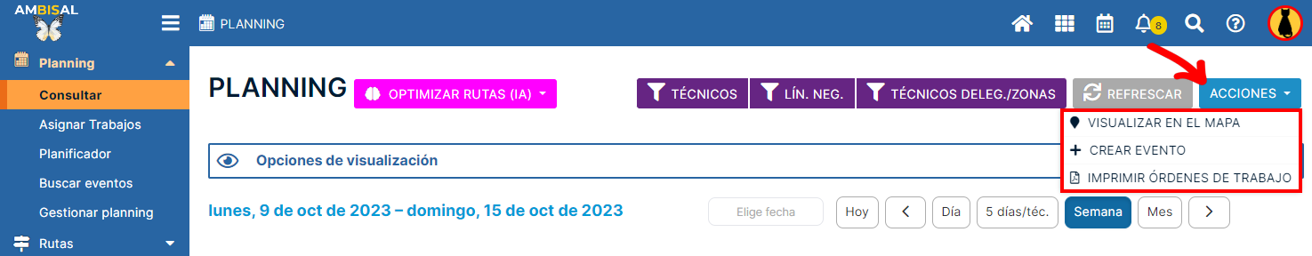 Una vez que una orden ha sido asignada a uno o varios técnicos, podremos verla en el Planning del módulo. Para ello, solo tendremos que abrir el módulo planning, y pulsar en Consultar planning. Como resultado, iGEO muestra el planning con todas las ...