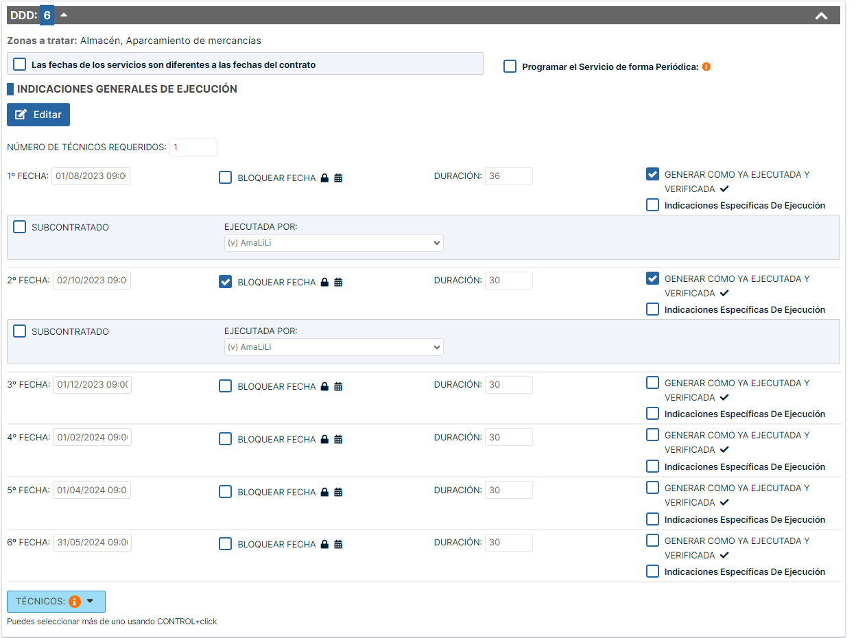 detalles de ejecución de todos los servicios prestados. Si nuestro