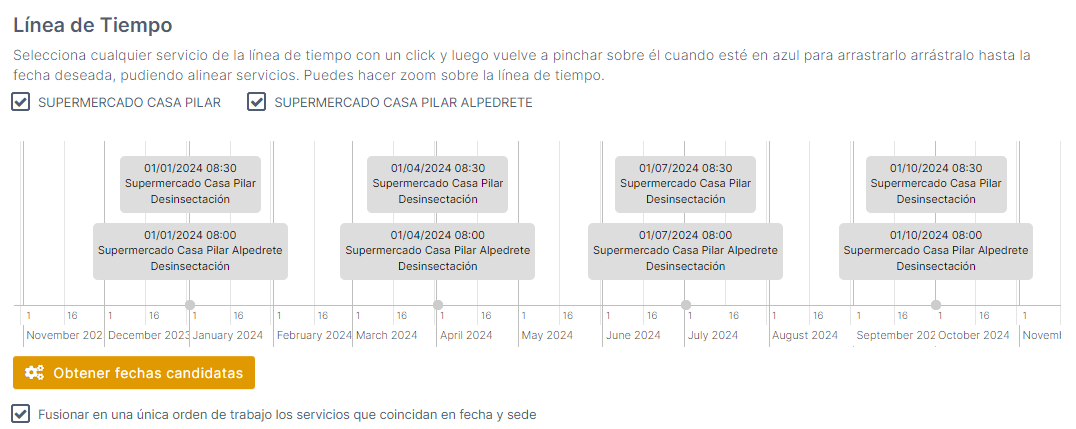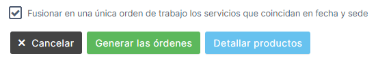 es posible fusionar órdenes que coincidan en fecha y sede, pero no