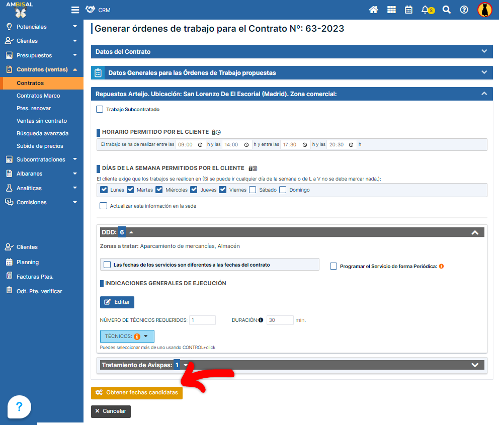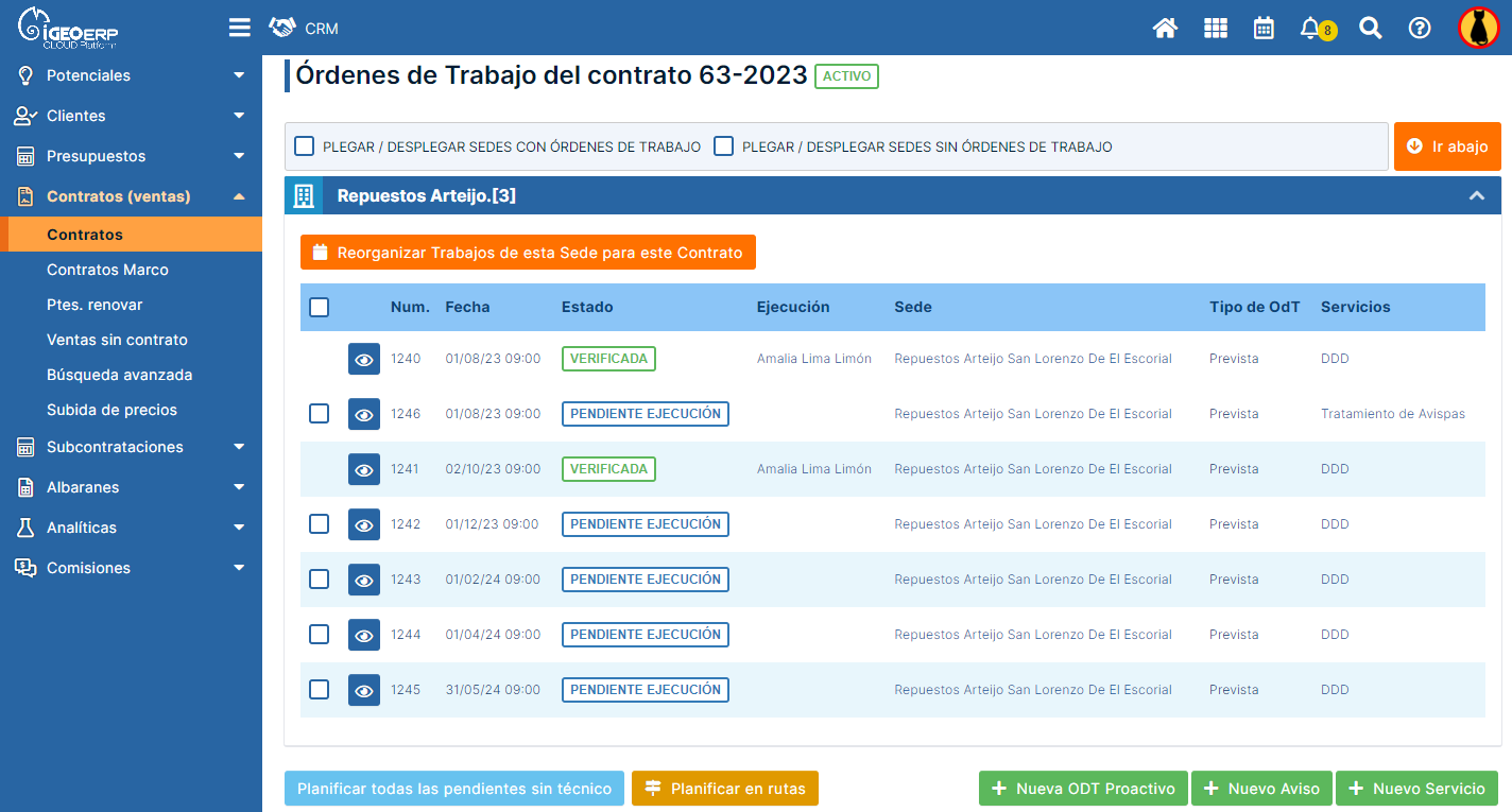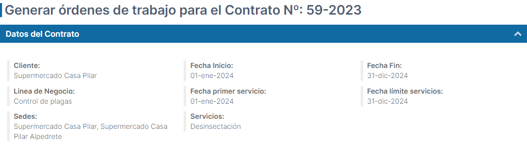 las órdenes de trabajo del contrato para cubrir todos los servicios