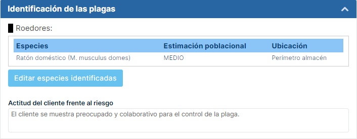 del cliente. Además de seleccionar la especie identificada, podremos