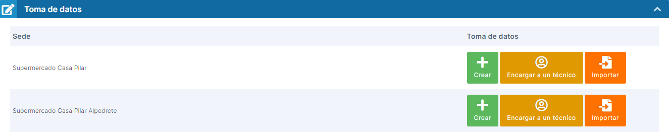 la toma de datos que ya completamos para esa sede en otro contrato.